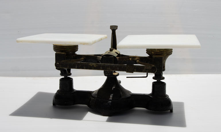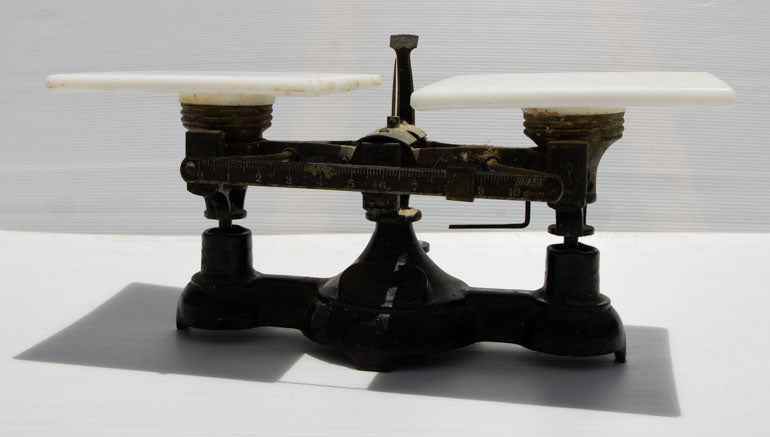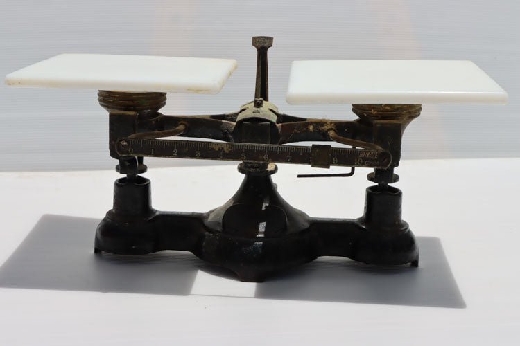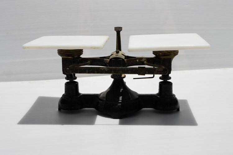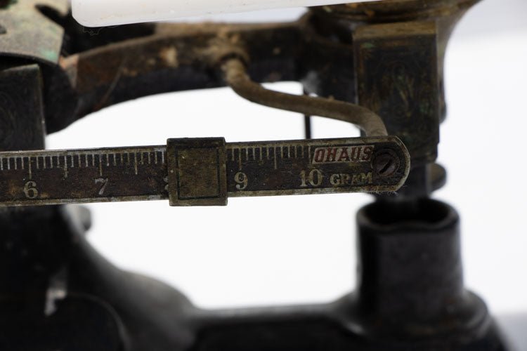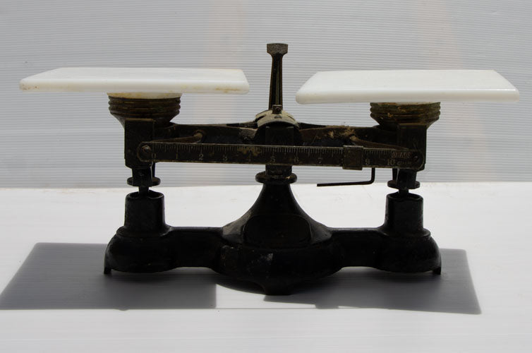 מאזני רוקחים מתחילת המאה וינטג' עם מוט איזון עשויות ברזל יצוק ולוחות שקילה משיש מתוצרת חברת ohaus נדירות ביותר במצב עבודה.