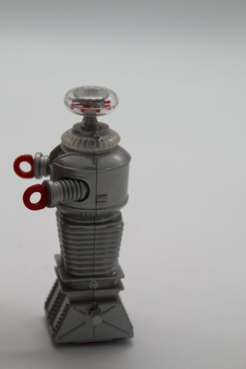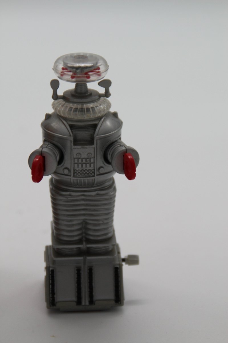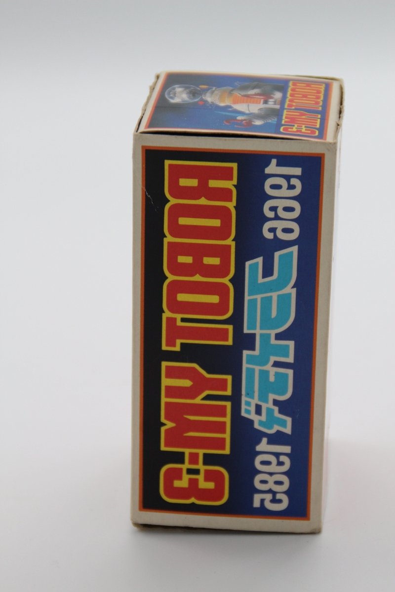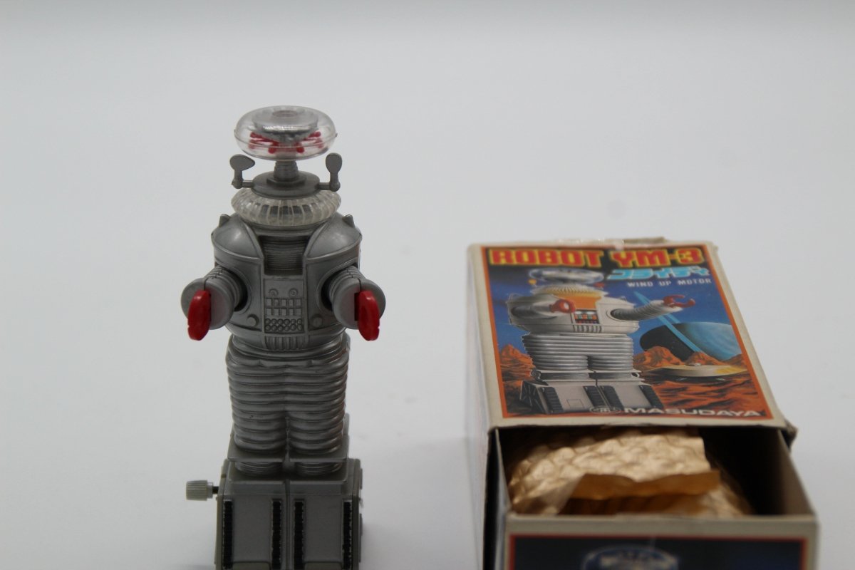 רובוט YM3 מאבודים בחלל- צעצוע רובוט קפיץ מכני מפח, פריט וינטג' נדיר שיוצר בשנת 1985 על ידי חברת Masudaya שמור כחדש באריזה
