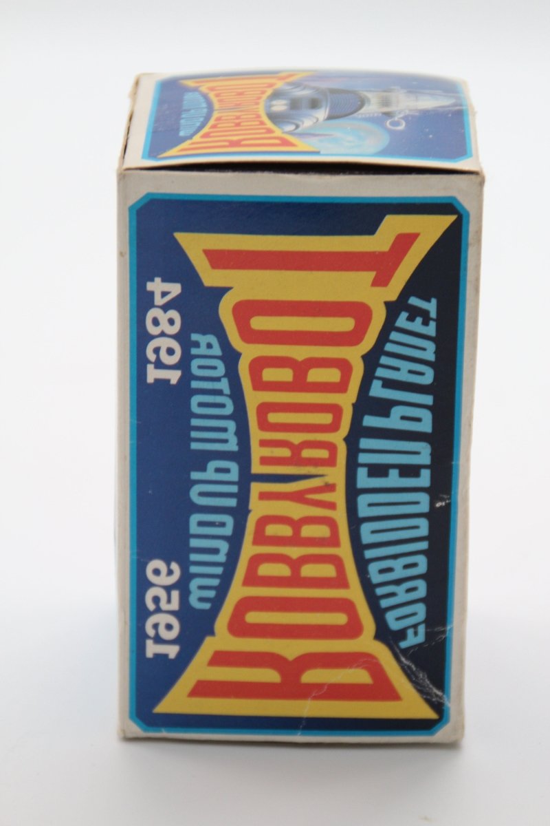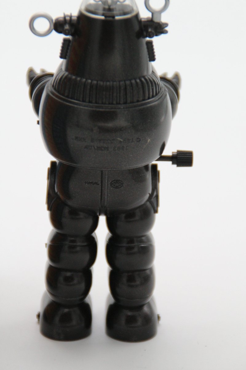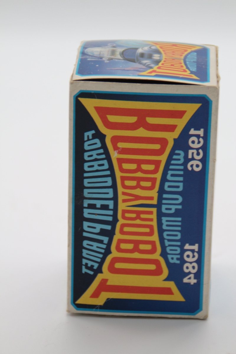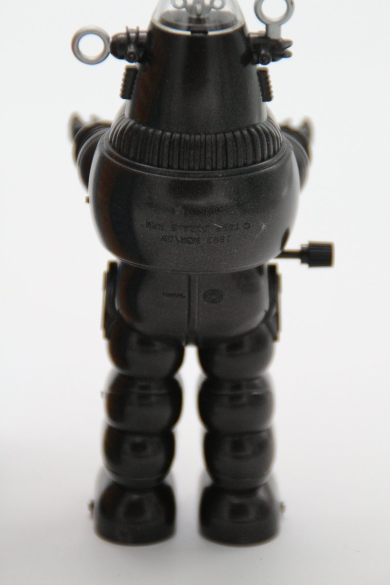 רובי הרובוט מהכוכב האסור - צעצוע רובוט קפיץ מכני מפח, פריט וינטג' נדיר שיוצר בשנת 1984 על ידי חברת Masudaya שמור כחדש באריזה