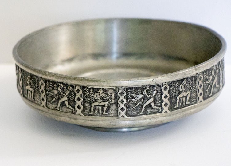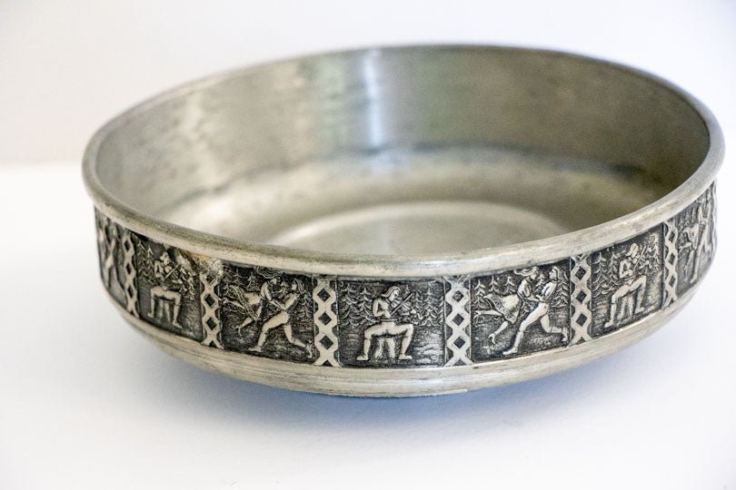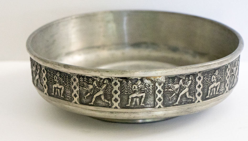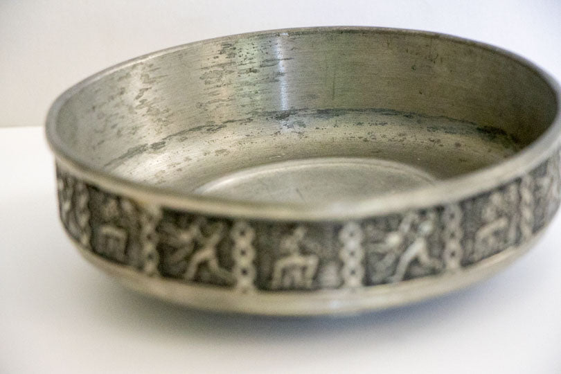 כלי מתכת ישראלי ישן משנות החמישים, מרוקע ביד  ומצופה כסף, קוטר: 16.0 ס"מ.